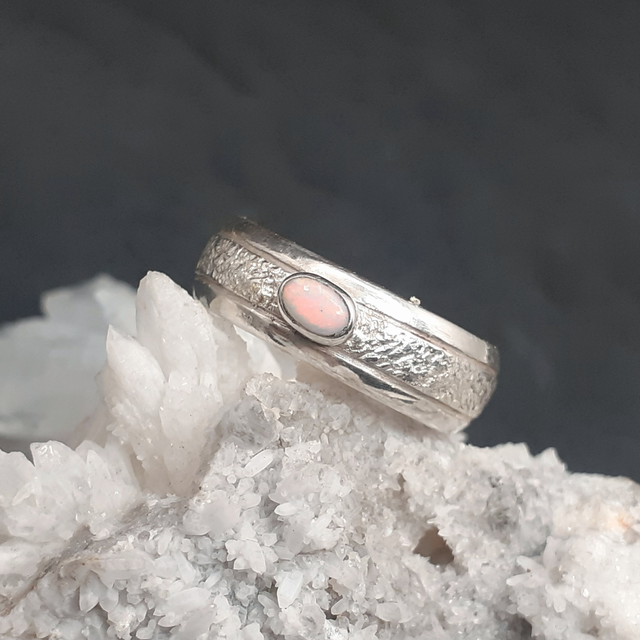 Bague en argent 9.25 avec belle opale de couleur lumineuse rouge, orange