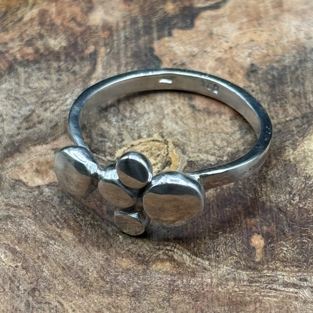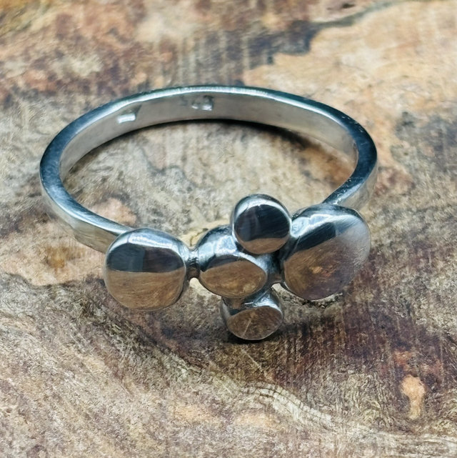 Ce Design géométrique composé de quatre cercles et un à l’intérieur, reliés évoque les quatre éléments: la terre, l’eau, l’air, et le feu. Une bague qui célèbre la connexion avec la nature et la force qui naît de l’équilibre entre toutes les énergies.