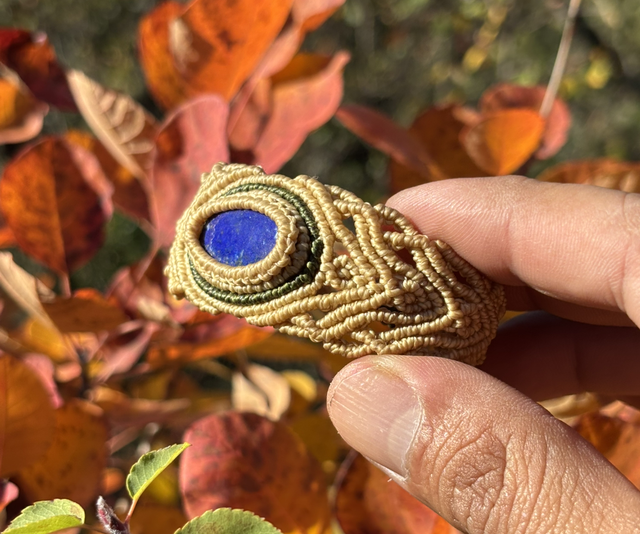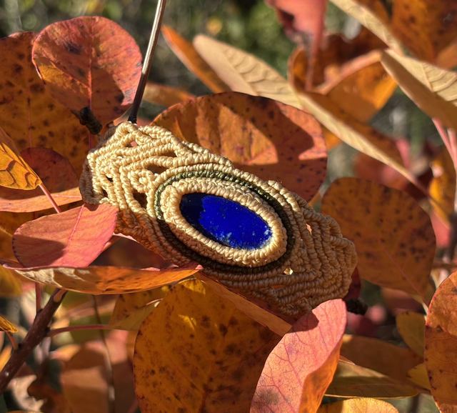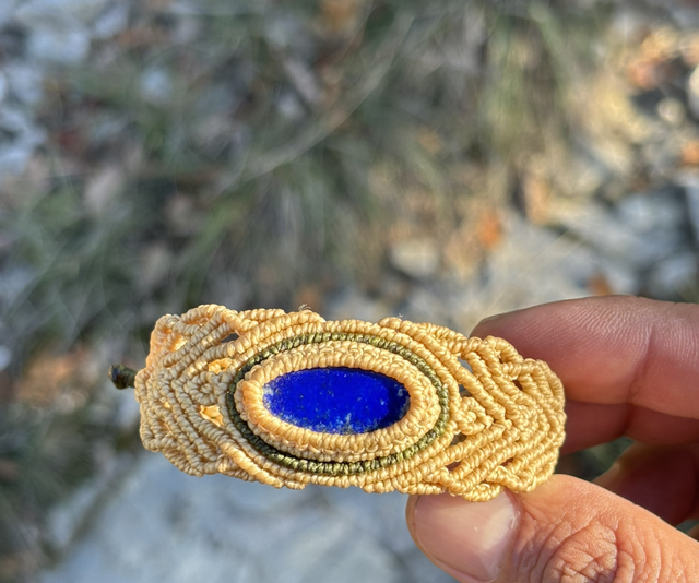 Bracelet en micro macramé avec pierre lapis-lazuli couleur bleu intense